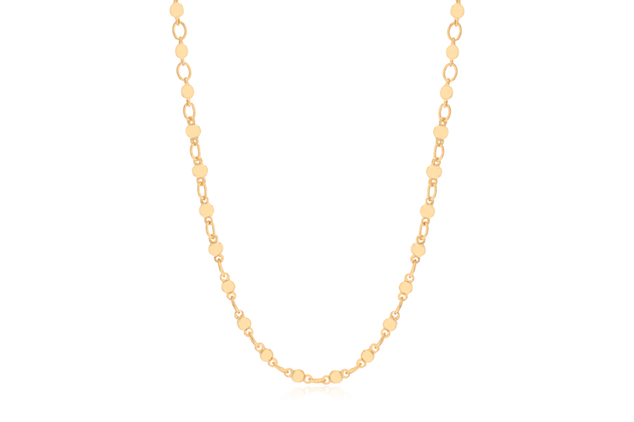 CHOKER BANHADA EM OURO, ELO ESFERA MARTELADA 2,50mm, 35cm COMPRIMENTO E EXTENSOR 10cm