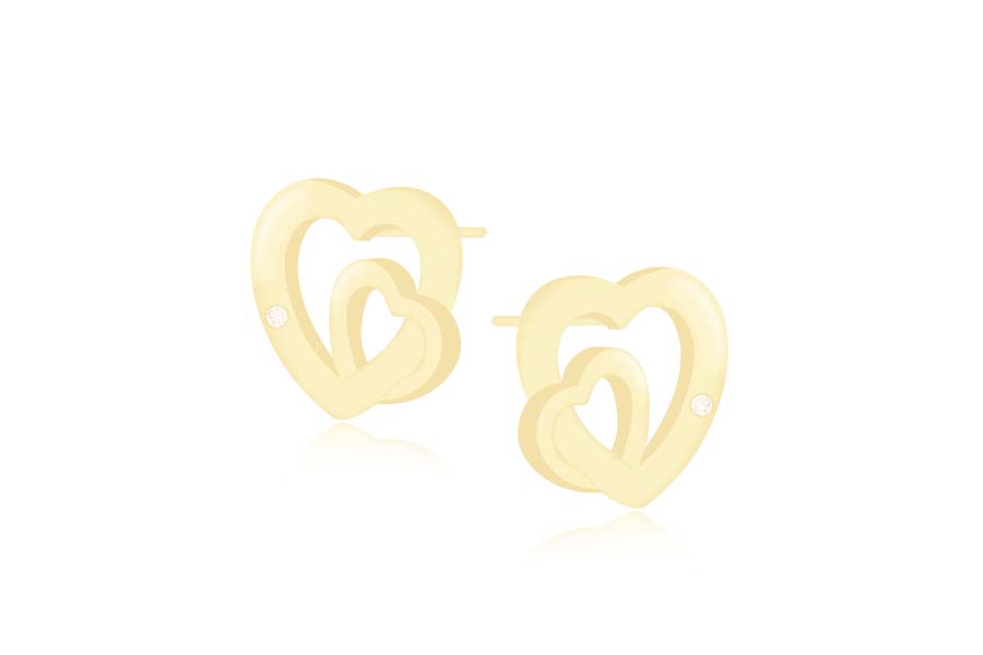 BRINCO BANHADO EM OURO, BASE 9mm DIÂMETRO E CORAÇÃO 11,50mm LARGURA