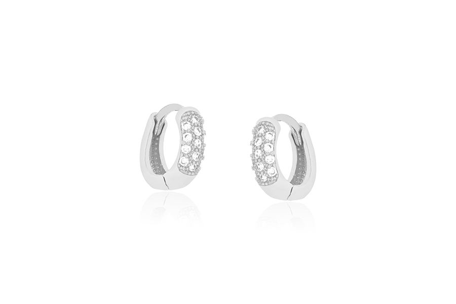 BRINCO EM PRATA, ARGOLINHA CLICK 11,80mm DIÂMETRO, ARO 1,80mm LARGURA, 1 FILEIRA DE ZIRCÔNIAS