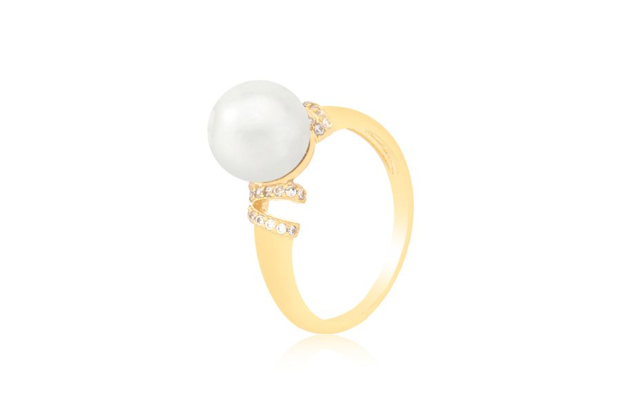 ANEL BANHADO EM OURO, SOLITÁRIO 8mm COM 34 ZIRCÔNIAS