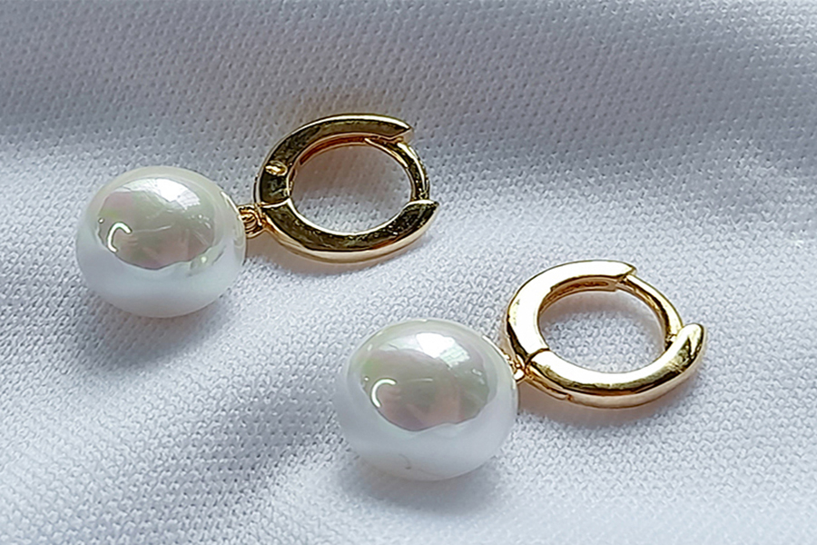 BRINCO BANHADO EM OURO, PÉROLA SHELL 6mm, LINHA TRADICIONAL