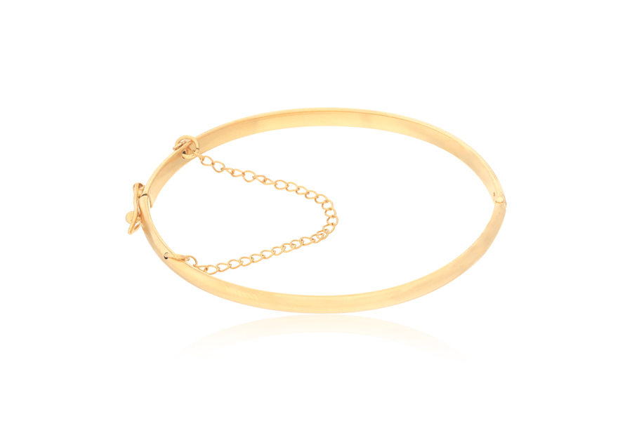 BRACELETE BANHADO EM OURO, OVAL 4mm LARGURA, 7cm COMPRIMENTO, LISO OU ACETINADO, COM PEGA LADRÃO