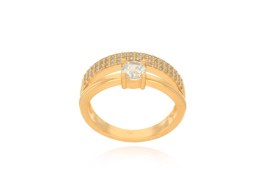 ANEL BANHADO EM OURO, 3 FIOS TRABALHADOS, COM ZIRCÔNIAS