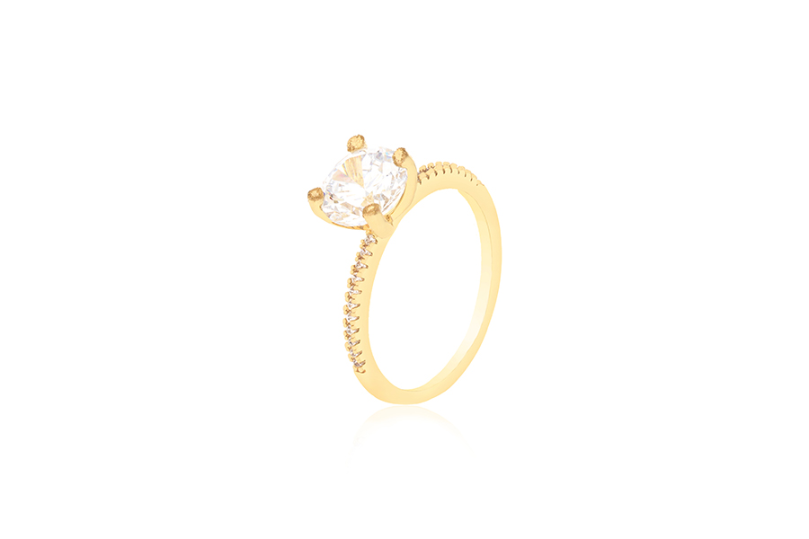 ANEL BANHADO EM OURO ZIRCÔNIA REDONDA 8mm PARA QUALQUER COR DE PEDRA