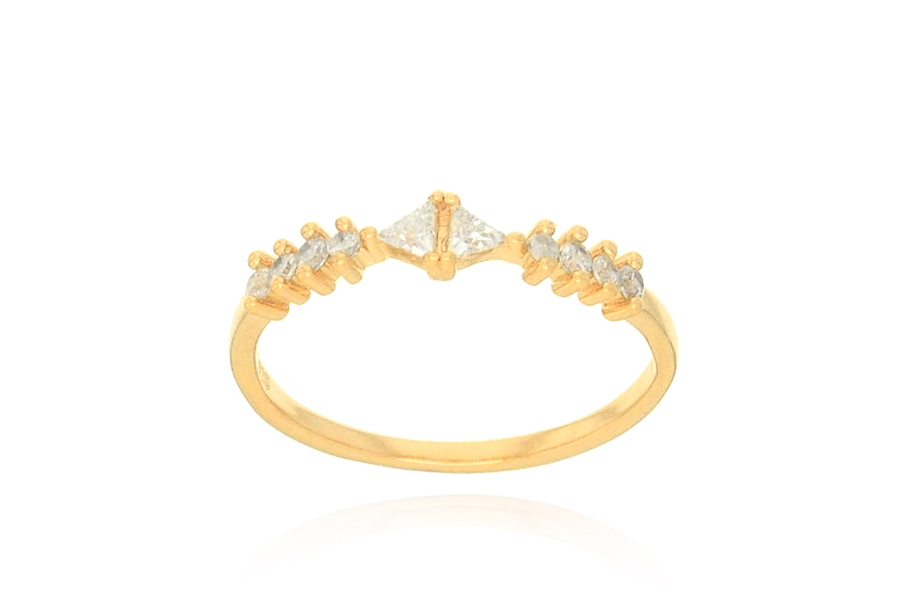 ANEL BANHADO EM OURO, ZIRCÔNIAS REDONDAS E TRIANGULARES