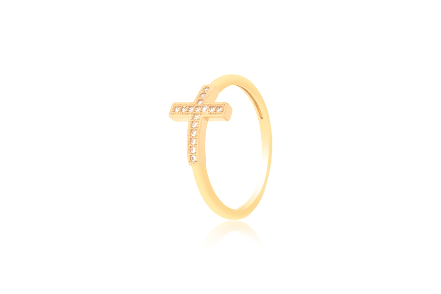 ANEL BANHADO EM OURO, SOLITÁRIO 8mm COM 34 ZIRCÔNIAS