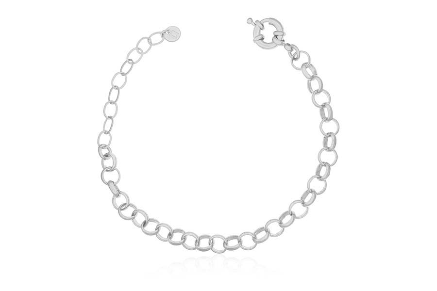 PULSEIRA BANHADA EM RÓDIO BRANCO, CORRENTE ELO PORTUGUÊS 7mm, 1,90mm ESPESSURA, 17cm, 18cm E 19cm COMPRIMENTO, EXTENSOR 5cm E PESO 10,30g