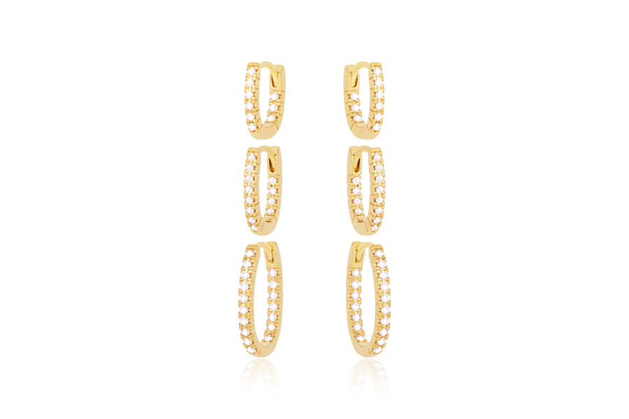 BRINCO BANHADO EM OURO 9mm LARGURA COM ZIRCÔNIAS BRANCAS OU COLORIDAS