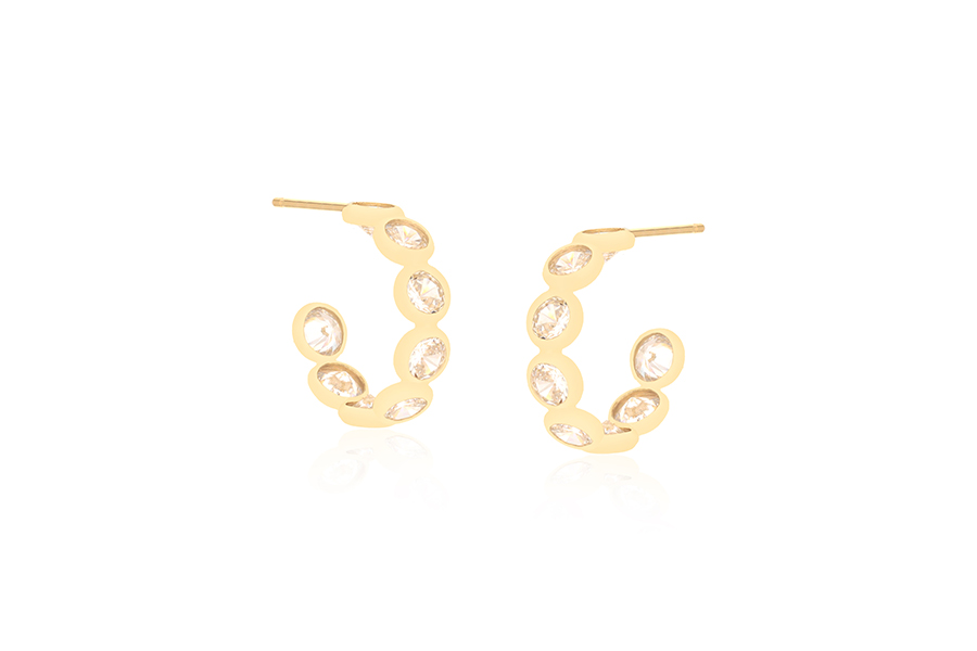 BRINCO BANHADO EM OURO 9mm LARGURA COM ZIRCÔNIAS BRANCAS OU COLORIDAS