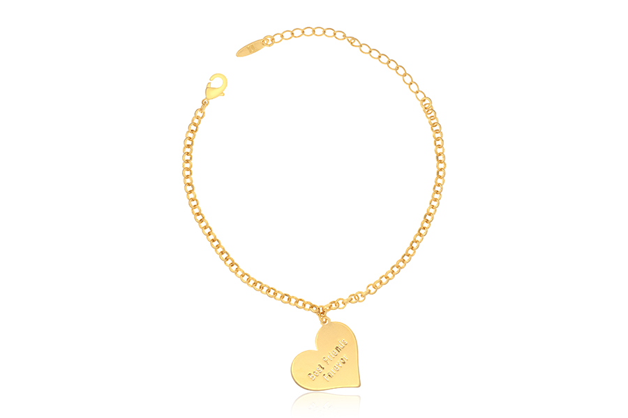 PULSEIRA BANHADA EM OURO, ELO PORTUGUÊS 3mm, 16cm COMPRIMENTO, EXTENSOR 5cm COMPRIMENTO E CORAÇÃO BEST FRIENDS FOREVER