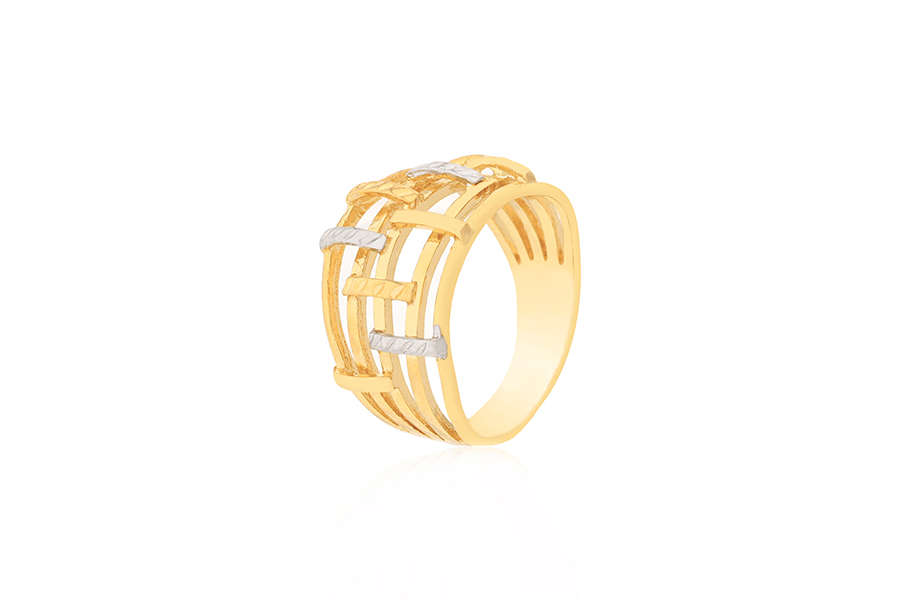 ANEL BANHADO EM OURO, 3 FIOS TRABALHADOS, COM ZIRCÔNIAS
