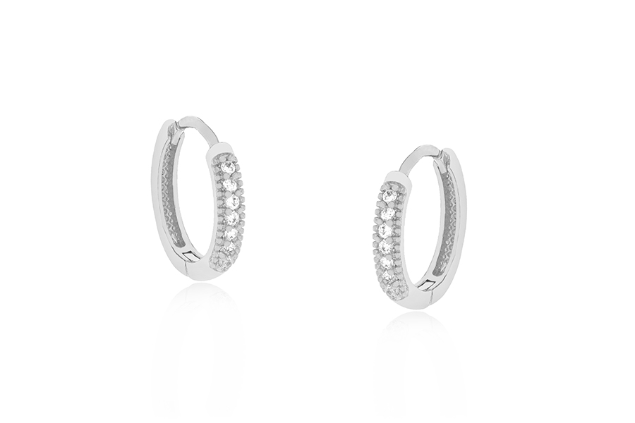BRINCO EM PRATA, ARGOLINHA 12mm DIÂMETRO, COM 22 ZIRCÔNIAS, COM BANHO DE RÓDIO BRANCO, COLEÇÃO AURA