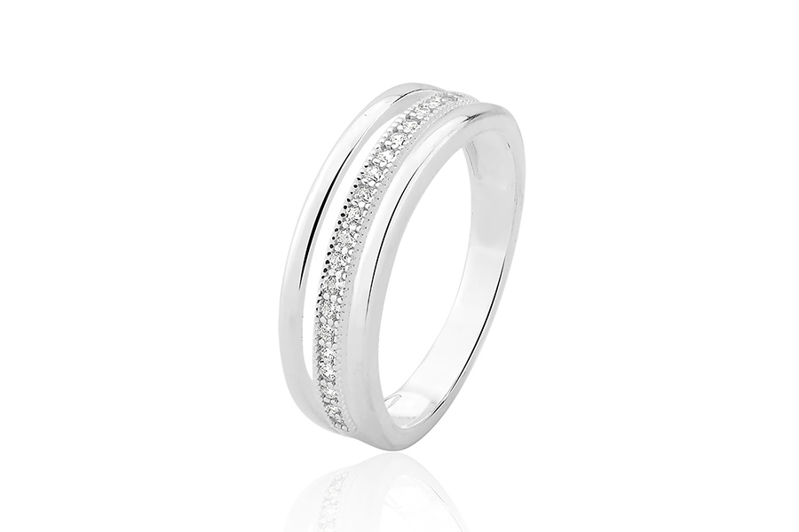 ANEL EM PRATA, 7mm LARGURA, COM BANHO DE RÓDIO BRANCO, COLEÇÃO AURA