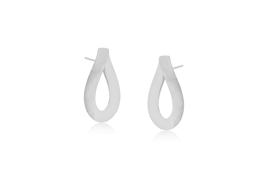 BRINCO BANHADO EM RÓDIO BRANCO, ARGOLA IRREGULAR 25mm ALTURA, LISO OU ACETINADO
