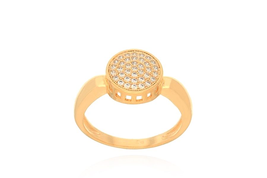 ANEL BANHADO EM OURO, SOLITÁRIO 8mm COM 34 ZIRCÔNIAS
