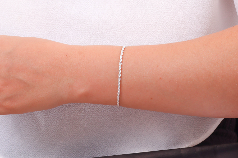 PULSEIRA BANHADA EM PRATA LEVE, CORRENTE ELO CORDA 2,50mm, 17cm COMPRIMENTO, EXTENSOR 5cm E PESO 3,60g