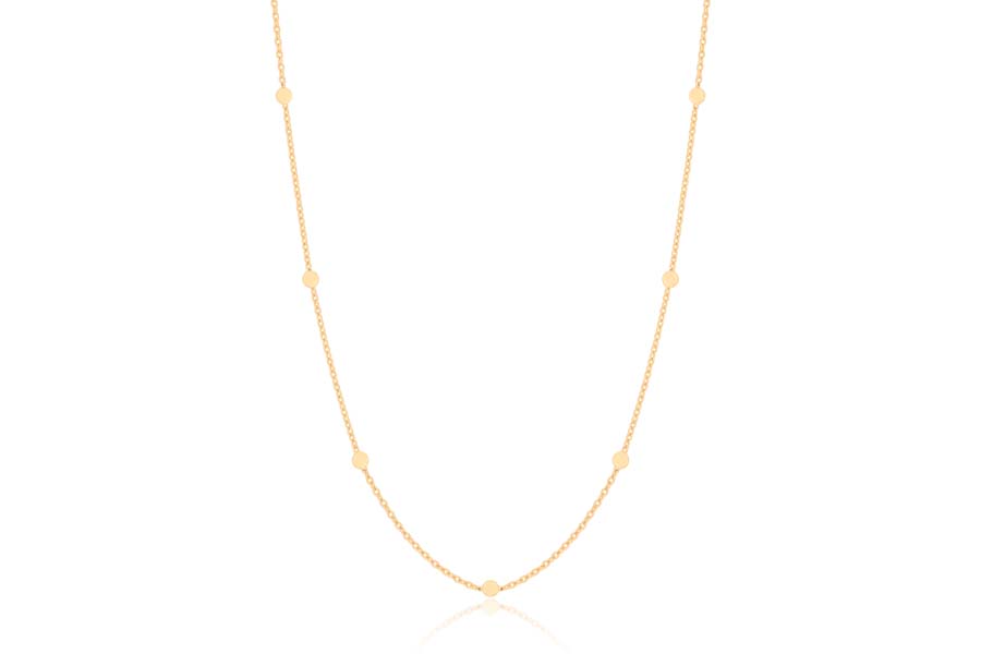 CORRENTE BANHADA EM OURO, ELO PORTUGUÊS 2,50mm, 40cm COMPRIMENTO, EXTENSOR 5cm COMPRIMENTO E PESO 3,40g