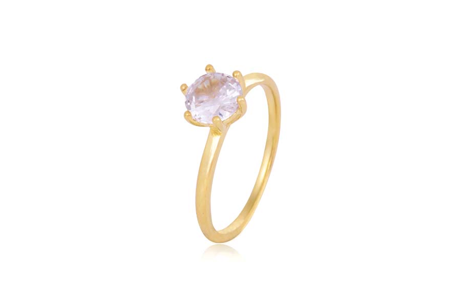ANEL BANHADO EM OURO, SOLITÁRIO 8mm COM 34 ZIRCÔNIAS