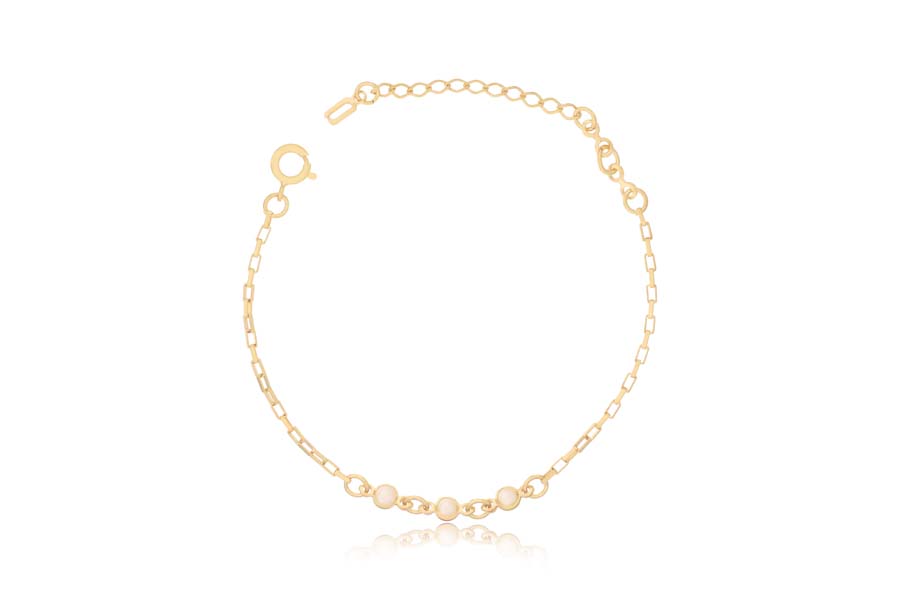 PULSEIRA BANHADA EM OURO, ELO VENEZIANA LONGA 1,50mm LARGURA, 15cm COMPRIMENTO, EXTENSOR 3cm, COM 3 PÉROLAS