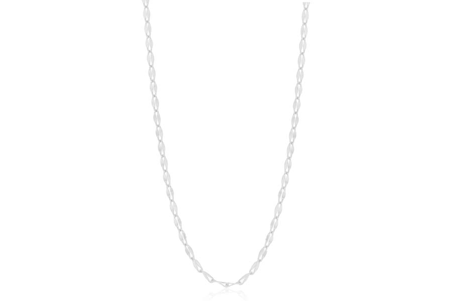 CHOKER BANHADA EM RÓDIO BRANCO, CORRENTE ELO LACRAIA 4mm, 35cm COMPRIMENTO, EXTENSOR 10cm COMPRIMENTO E PESO 9,70g