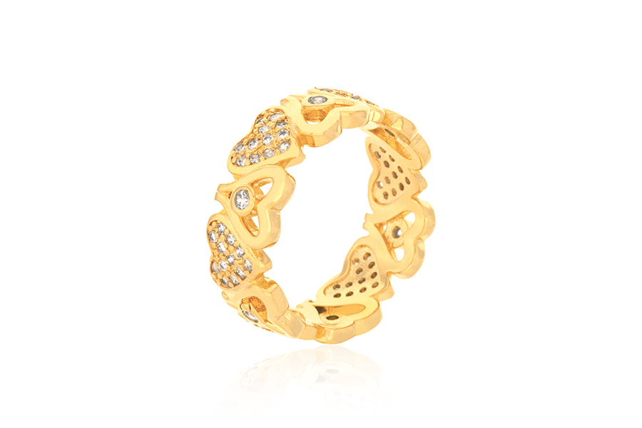 ANEL BANHADO EM OURO, SOLITÁRIO 8mm COM 34 ZIRCÔNIAS