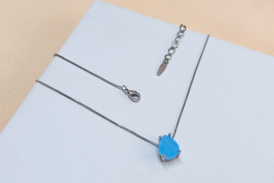 CHOKER BANHADA EM RÓDIO BRANCO, ELO 1,50mm LARGURA, OLHO GREGO, 35cm COMPRIMENTO E EXTENSOR 10cm COMPRIMENTO