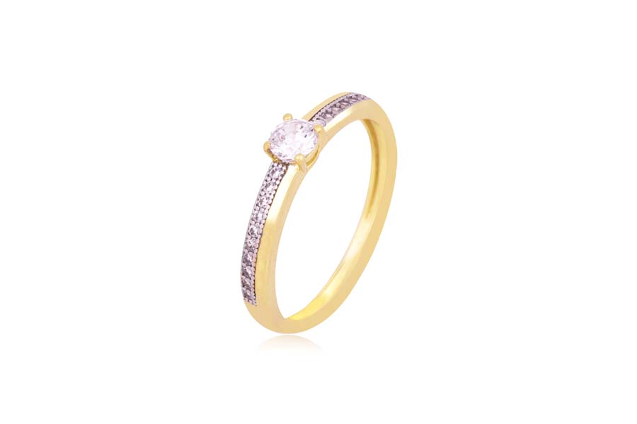 ANEL BANHADO EM OURO, SOLITÁRIO 8mm COM 34 ZIRCÔNIAS